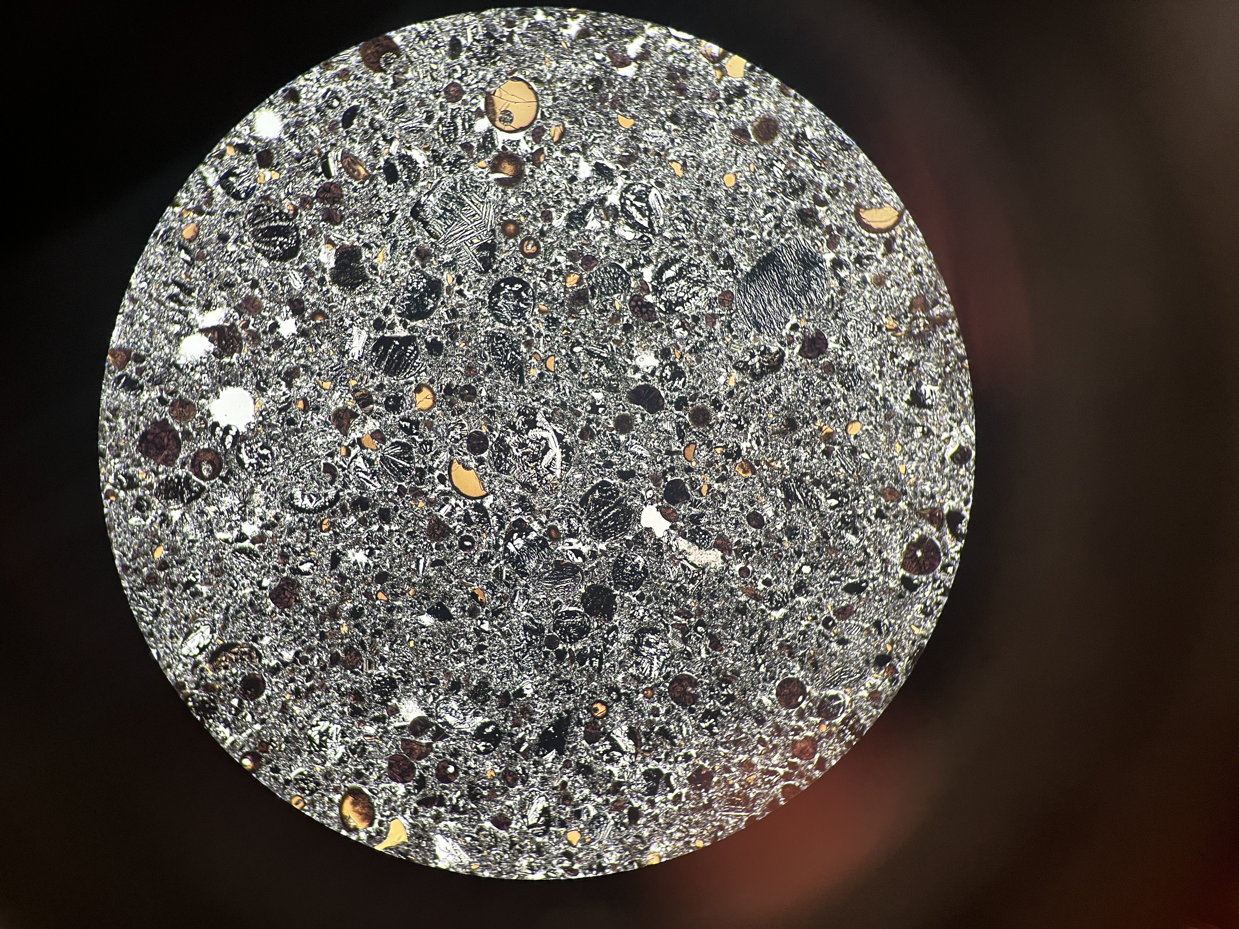May 2023 - Apollo 17 Ti-rich glass - microscope view of some orange glass beads